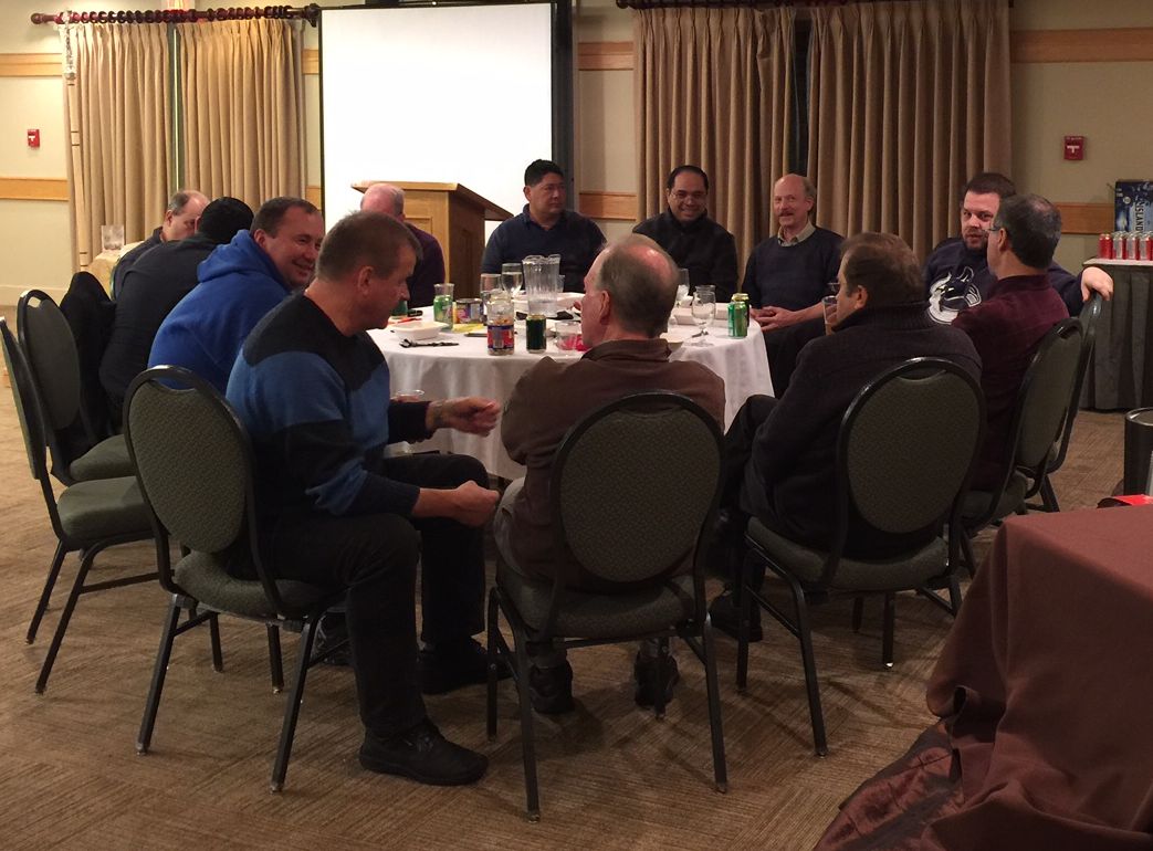 A nice group shot of Bishop Barnes and the priests of San Bernadino, California, at the end of their week long retreat.